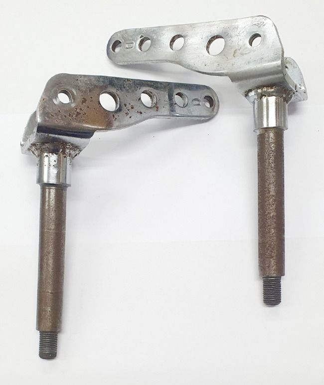 ENGLISH [MAYBE ZIP] KART STUB AXLES RH AND LH 17MM X 95MM SHAFT 45MM C SECTION INSIDE 12MM THREAD 8MM K/P HOLE 105MM C/C K/P TO TIE ROD HOLES [S/HAND ] [ IN GOOD CONDITION FOR THERE AGE]