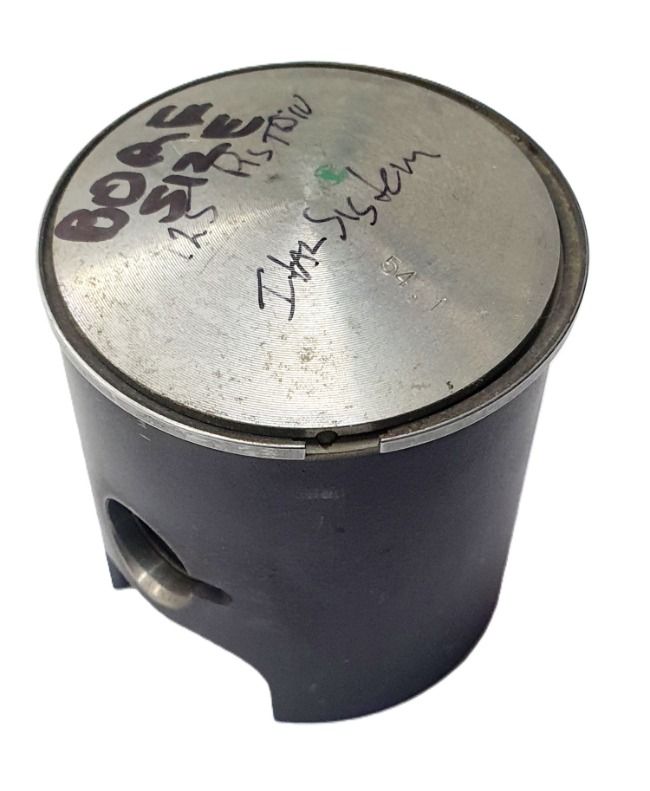 ASSO WERKE 54.10 [BORE SIZE] PISTON AND RING NEW COATED REED OR ROTARY STYLE RING PEG TO THE SIDE FRONT BETWEEN BOOST AND TRANSFER PORTS