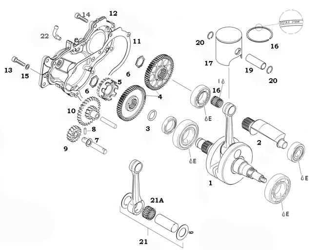 | No 01 CRANKSHAFT ASSEMBLY ROTAX MAX COMPLETE CRANKSHAFT ASSY INC CONROD , CRANK HALVES , PIN AND BEARING $970.20 | |